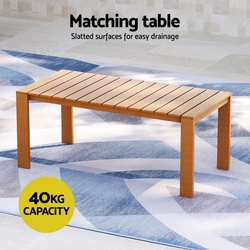 Get outdoors just in time for summer with the Gardeon 5-seater Outdoor Sofa Set. Featuring a 3-seater sofa, a single sofa, a wide coffee table and an ottoman, there's plenty of space for the whole family. The set is easy to assemble, and you can easily configure the seating into your perfect outdoor set-up. The set uses solid Acacia wood, while the outdoor cushions feature water-resistant, UV-resistant covers, and a thick 10cm high-density foam core for comfort. The tabletop's slatted design easily drains during wet weather and has plenty of room to hold your outdoor essentials. Maintenance is as easy as wiping down the furniture, and you can remove the cushion covers for even easier cleaning. So what are you waiting for? Make the most out of the beautiful weather with a Gardeon 5-seater Outdoor Sofa Set.