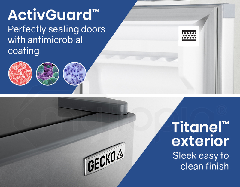 The Gecko is designed to perform in harsh Australian conditions. Latest compressor technology and thick insulation ensure that it can cool fast and continue to operate in ambient temperatures up to 38 degrees! The Gecko range feature ActivSeal™ technology which combines perfectly sealing doors with an anti-microbial coating to inhibit the growth of germs. All this is wrapped in a sleek Titanel™ metal finish, ensuring it will look right at home anywhere, and is also ready for your souvenir magnet collection!