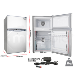 It boasts a generous capacity to comfortably cater for long road trips in your motorhome or caravan. The 27L freezer compartment, and the 68L fridge section has a crisper, adjustable shelves and convenient egg tray. With rugged hinges, locking doors, adjustable feet and the ability to operate at up to a 30 degree incline, it is ready for off beaten tracks, or use on a yacht.