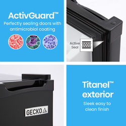 The Gecko Camping Fridge Freezer is designed to perform in harsh Australian conditions with quality compressor technology and thick insulation for fast cooling and operation in ambient temperatures of up to 38 degrees! The Gecko range features ActivSealTM technology which consists of perfectly sealing doors with an anti-microbial coating to inhibit the growth of germs. The Gecko also has flush recessed handles a great feature for confined spaces. All this is wrapped in a sleek TitanelTM metal finish, ensuring it will look right at home, anywhere!