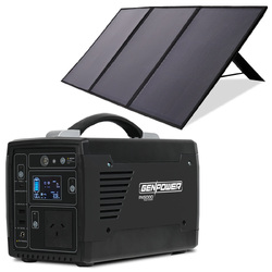 GENPOWER Portable Power Station Lithium 300W/600W 21Ah 307Wh Solar Generator with 100W Folding Solar Panels