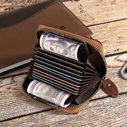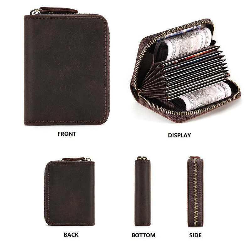 Zip Closure: The zip-around closure keeps your cards and cash securely stored, preventing them from accidentally falling out.