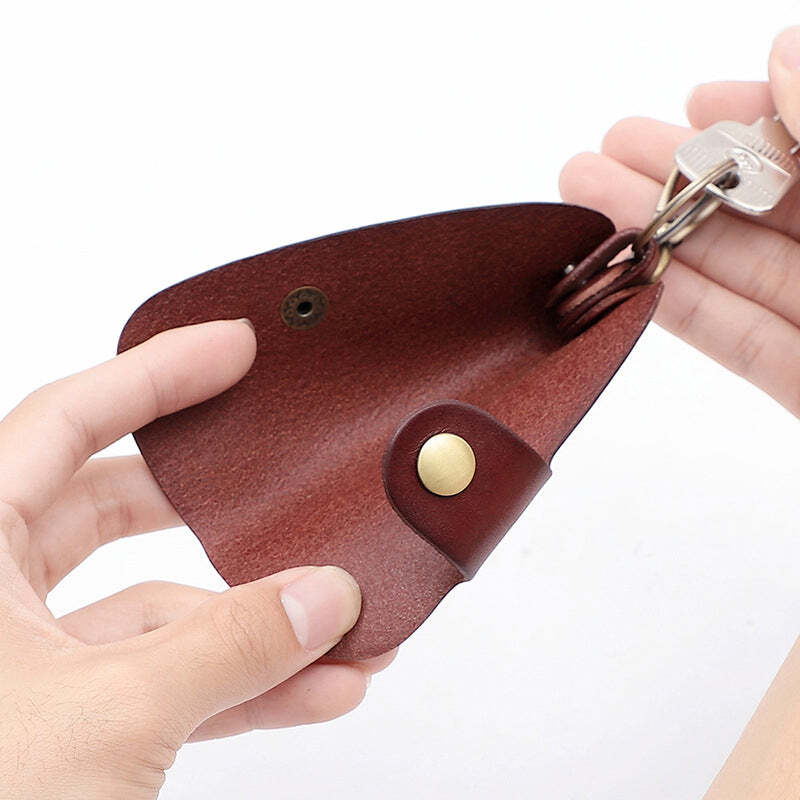 Despite its small size, the wallet's interior is intricately designed to provide ample space for 4-5 keys, coins, and a few credit cards. Crafted from high-quality top-grain leather, it ensures long-lasting use while boasting a classic appearance and tactile feel.