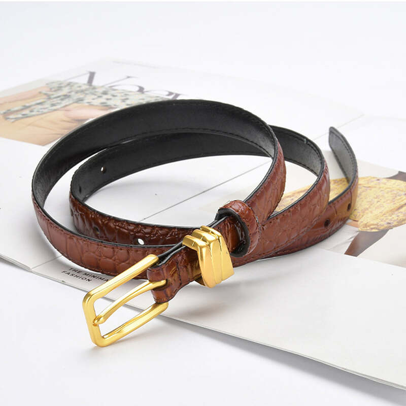 Genuine leather with Crocodile pattern pin buckle thin belt jeans belt for women (Light Brown)