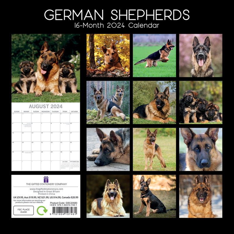 German Shepherds - 2024 Square Wall Calendar Pets Dog 16 Months Premium Planner