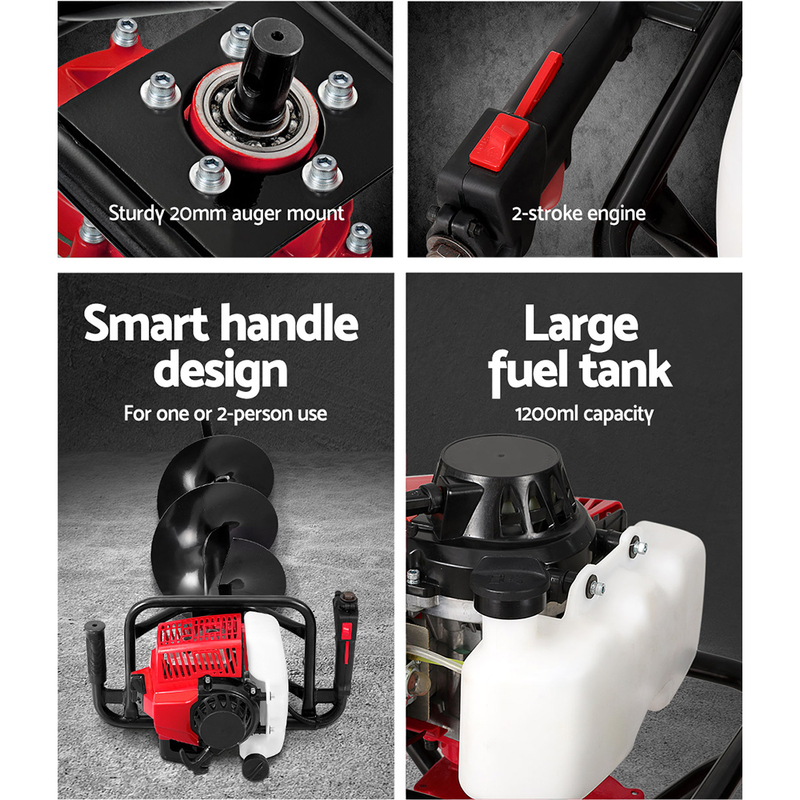 With regard to its operation, the GIANTZ Post Hole Digger offers a smooth start with consistent power, coupled with quality rubber hand grips for relatively stress-free handling. Not least, the smart handle can also accommodate either a one-man or two-person operation.