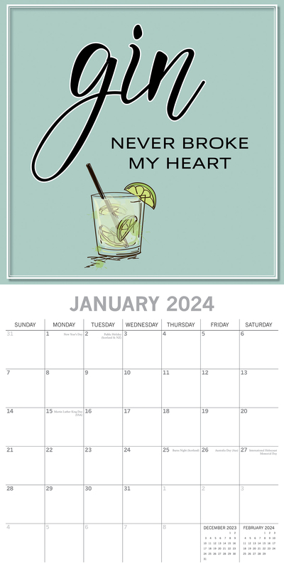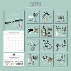 Gin - 2024 Square Wall Calendar 16 Months Funny Planner Christmas New Year Gift
