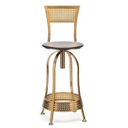 Gold Black Swivel Kitchen Bar Stool Chair with High Back in Netted Design Frame