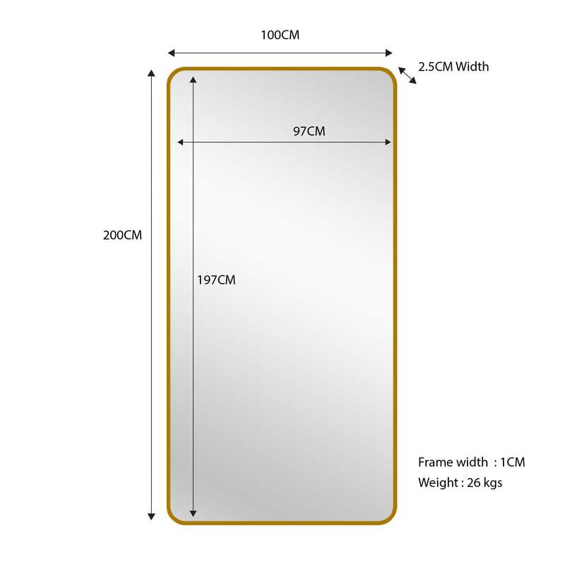 Total Mirror : Length 100cm x 200cm x Width 2.5 CM