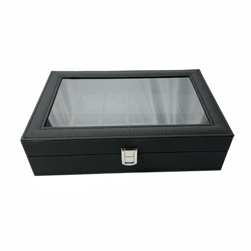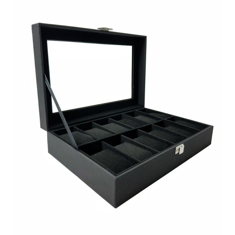 GOMINIMO 12 Slot Watch Box with Transparent Display Window (Black) GO-WO-101-FH