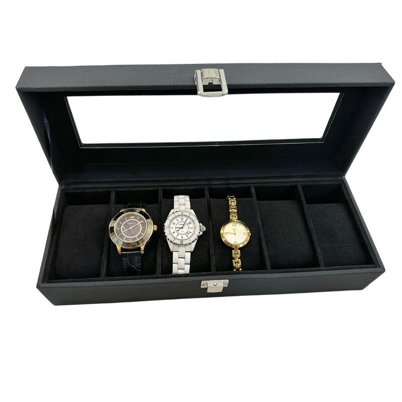 GOMINIMO 6 Slot Watch Box with Transparent Display Window (Black) GO-WO-100-FH