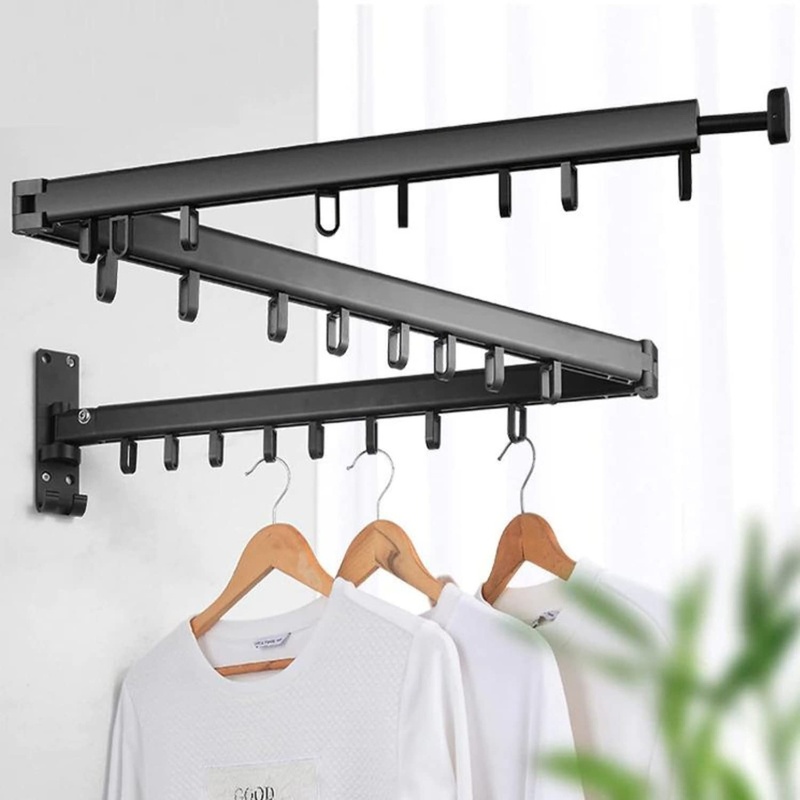 GOMINIMO Wall Mount Tri-fold Clothes Rack Black