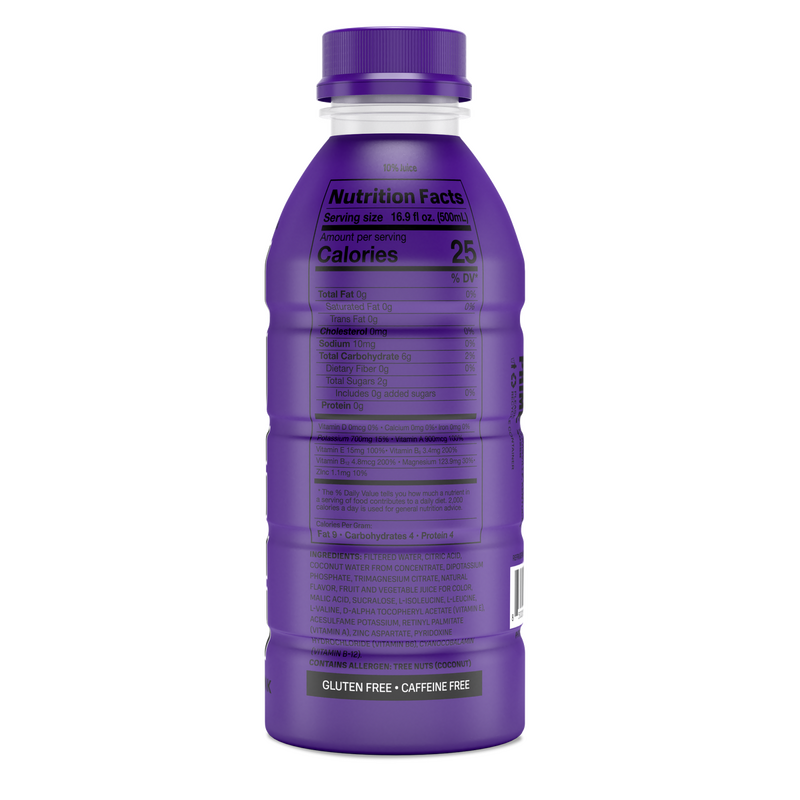 Introducing the Prime Hydration Lemonade in a convenient 16.9oz bottle ??a refreshing and revitalizing option to quench your thirst. With its vibrant lemon flavor, this lemonade offers a delightful taste experience that's perfect for any moment you need a revitalizing boost. Prime Hydration Lemonade is designed not only to be delicious but also effective in keeping you hydrated. Whether you're hitting the gym, on the move, or simply taking a pause, this 16.9oz bottle is a convenient companion. Immerse yourself in the zesty natural lemon taste that brings a tangy and invigorating note to your hydration routine. Enjoy optimal hydration with the well-balanced blend of electrolytes and essential minerals found in Prime Hydration Lemonade. Its portable 16.9oz bottle is designed for easy transport, fitting seamlessly in your bag or cup holder. Made with carefully chosen natural ingredients, this lemonade lets you enjoy genuine flavors without any artificial additives. Embrace the versatility of Prime Hydration Lemonade ??a revitalizing drink suitable for leisurely sipping or quick refreshment, helping you stay hydrated and invigorated throughout the day. INGREDIENTS: Filtered Water, Coconut Water From Concentrate, Citric Acid, Dipotassium Phosphate, Sucralose, Acesulfame Potassium, Natural Flavor, Gum Arabic, Ester Gum, Trimagnesium Citrate, L-Isoleucine, L-Lecuine, L-Valine, D-Alpha Tocopherol Acetate (Vitamin E), Beta-Carotene for Color, Retinyl Palmitate (Vitamin A), Pyridoxine Hydrochloride (Vitamin B6), Cyanocobalamin (Vitamin B12). Contains Allergen: Tree Nuts (Coconut)