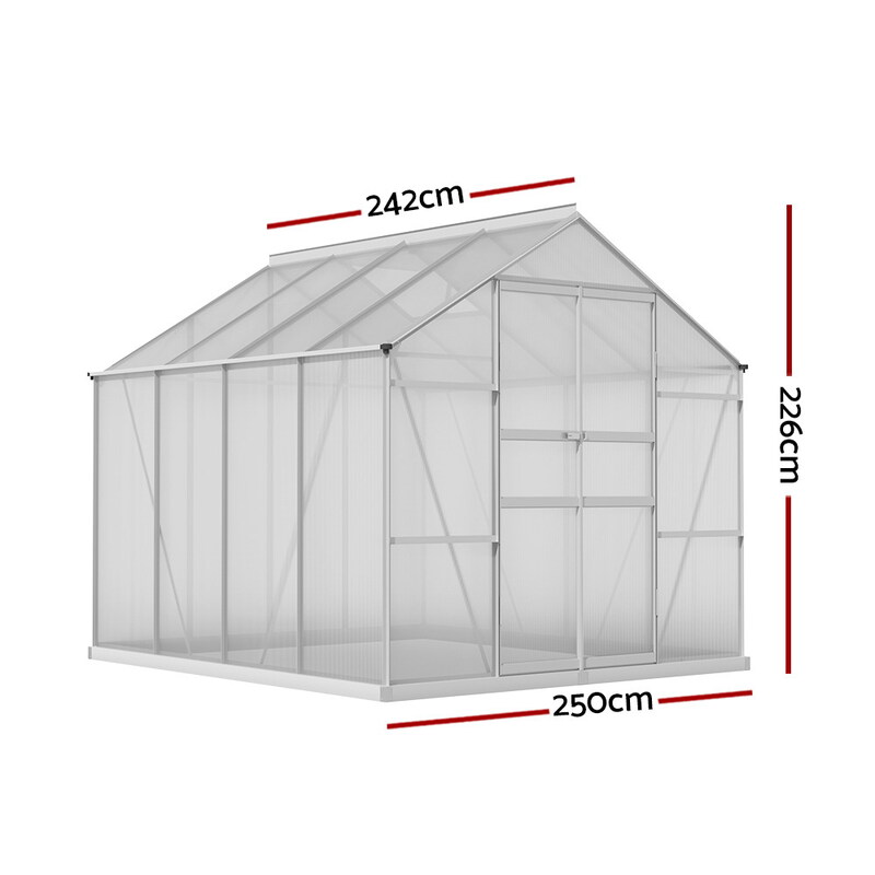 Greenfingers Aluminium Greenhouse Green House Polycarbonate Garden Shed 2.4x2.5M