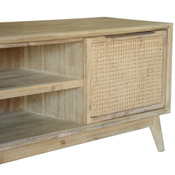 Grevillea ETU Entertainment TV Unit 180cm Solid Acacia Wood Rattan 2 Door -Brown