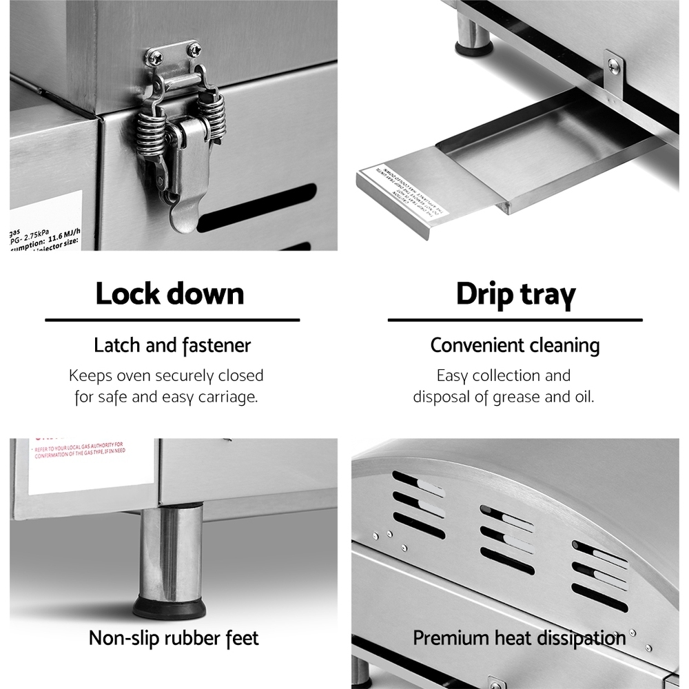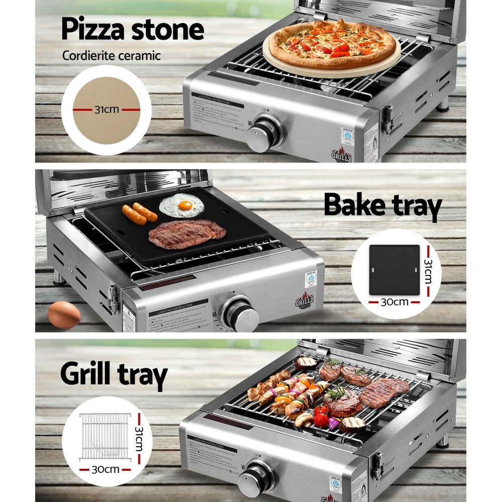 Grillz Portable Gas Oven Camping Cooking LPG Grill Pizza Stove Stainless Steel