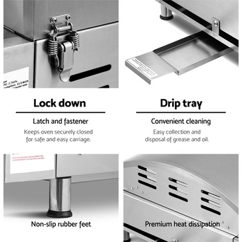 You no longer need to pay the premium at fancy restaurants to eat gourmet pizzas with our Grillz Portable Pizza Oven. Now you can cook and enjoy your own gourmet pizza in the comfort of your own backyard or while camping. But our pizza oven does not only cook pizza ??it is actually a 3-in-1 oven that allows you to bake, grill or cook according to your tastes. The cordierite ceramic stone provides the perfect pizza baking surface for a crunchy crust and fluffy insides. Use the grill plate for all your chargrilling needs such as at your regular summer barbecues and the cook plate for all other cooking needs. The pizza oven is easy to use, as you only need to connect an LPG tank and turn the ignition. The integrated thermostat means you are always in control of the cooking process and the stainless-steel drip tray makes cleaning up hassle-free. There is also a fastener to keep the pizza oven securely closed so that you can easily transport it around to truly enjoy perfect pizza whenever and wherever you please.