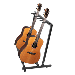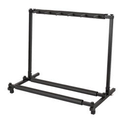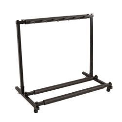 The stand itself offers optimal sturdiness and can support the load of up to 5 guitars. Whether you have a mixture of acoustic guitars, bass guitars or electric guitars, the stand is built to support all types. The black neoprene rubber base prevents slippage or scuffing, so you can guarantee your much-loved instruments maintain their condition. The guitars are separated by pegs to avoid them leaning against one another and keep them in standing formation. Accompanied by a durable iron structure, you can rest assured that this guitar-holding stand will withstand the test of time. We understand that, as a musician, you may constantly be hitting the road. That's why the stand is easy to fold into a compact position, ready for transportation.