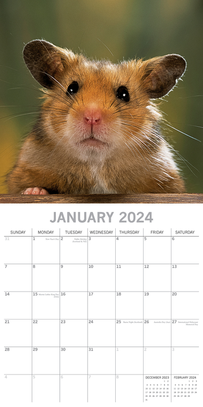 Hamsters - 2024 Square Wall Calendar Cute Pets Animals 16 Months Premium Planner
