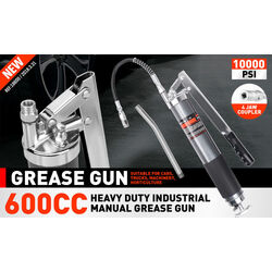 Heavy Duty 600cc Manual Grease Gun Flexible Hose Coupler 10000PSI Oiling Tools