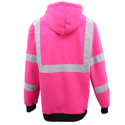 HI VIS Hooded Safety Jumper Hoodie Sweatshirt Tradie Workwear Fleece Jacket Coat, Fluro Pink, 3XL