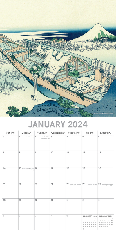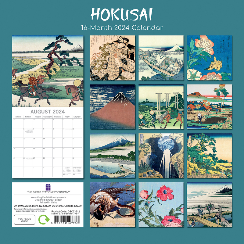 Hokusai 2024 Square Wall Calendar 16 Months Arts Planner Christmas New Year Gift
