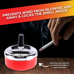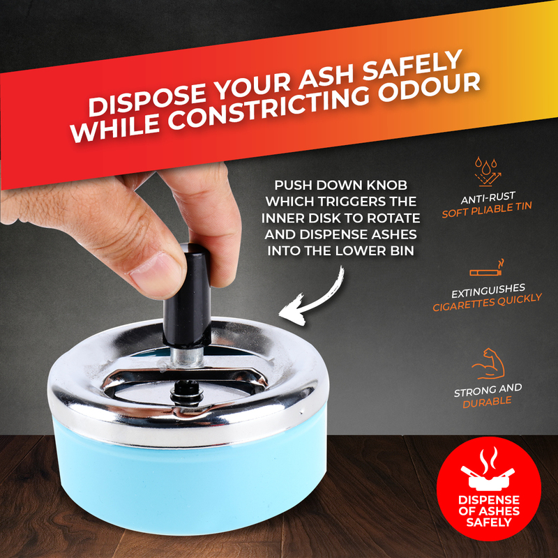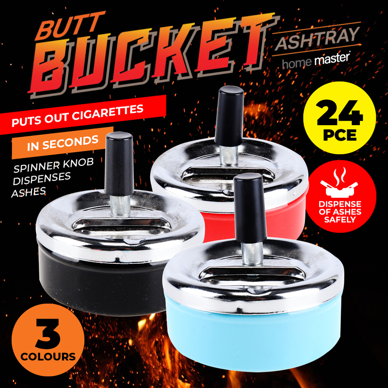 Home Master? Ashtray tins with easy to use push down rotating lid. Ideal for disposing cigarettes and ashes, these tins are anti-rust and durable.