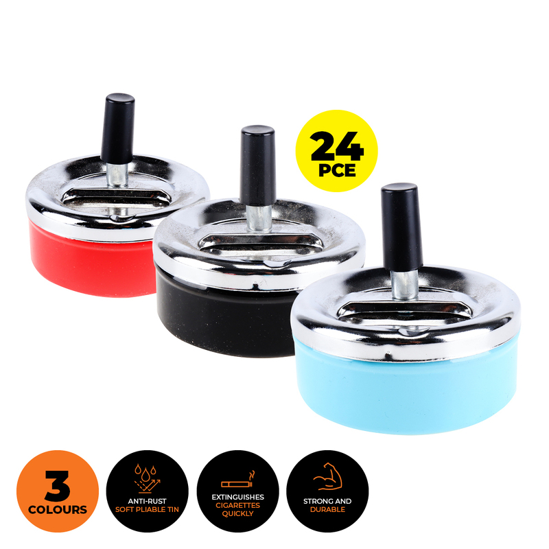 Home Master 24PCE Ashtray Tin Push Down Rotating Lid Sturdy Structure 9.5cm