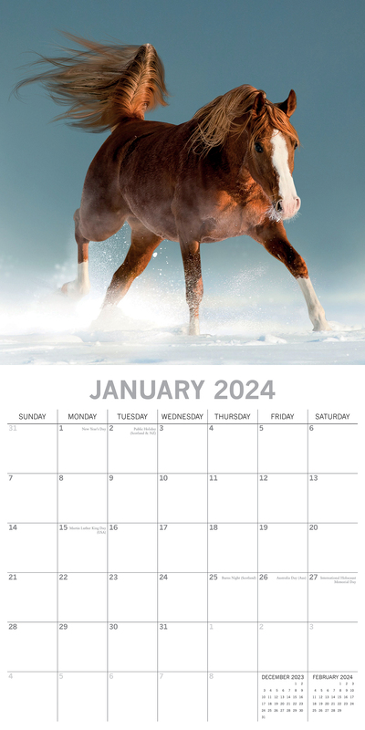 Horses - 2024 Square Wall Calendar Pets Animals 16 Months New Year Planner Gift