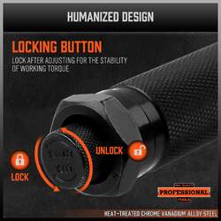 - DURABLE - Reinforced ratchet gear head constructed from hardened, heat treated Chrome Vanadium alloy steel.