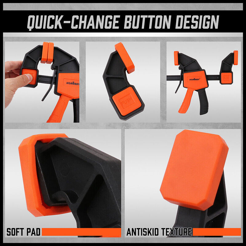 - Pad features a flexible material and a non-slip texture that enhances the overall clamping force. The quick release design makes your functions easier. The ergonomic handle can provide customers with a more comfortable feel.