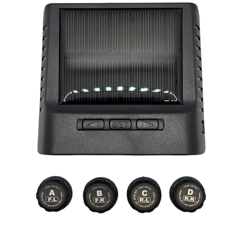 \nProduct Description \n \nSolar power charging \n \nHigh and low-pressure, leak alarm \n \nLCD screen, Simple user interface \n \nHigh accuracy, Using Freescale imported chips \n \nReal-time monitoring of tire pressure and temperature \n \nSmart start: parking automatically sleeps, and the car starts automatically waking up. \n \nTwo units (PSI / Bar) are changeable, you can set the one you like. \n \nSensors' battery Changeable \n \nBattery life 2 years, external screw lock. Easy DIY installation done in 10 minutes. \n \nThe specifications of our TPSM external sensor: \n \nSolar power charging \n \nLCD displaying \n \nAdhere to the windscreen for installation \n \nOperating frequency: 433.92Mhz ? 50KHz \n \nOperating voltage: 3.7-5 V \n \nWorking temperature: -20 ??-75 ??\n \nAdhere to the windscreen for installation \nPackage: \n \n1 set Solar Charging Tyre Pressure Monitoring System \n \n4 External sensors \n \n1 USB cable \n \n1 set of accessories (tool) \nSpecifications \n \nVoltage: 3.7-5V \n \nKey feature1: Externa sensor TPMS \n \nKey feature2: LCD screen, Simple user interface \n \nKey feature 3:Real-time monitoring of tire pressure and temperature \n \nITEM name: HRIDZ 1050 automotive TPSM monitor external sensor type pressure \n \nOperating voltage:3.7-5V \n \nDisplay mode: LCD Colour- You are most welcome to collect your order from our warehouse at 1/191 The Horsley Drive Fairfield NSW 2165 (Entry from Tangerine Street).