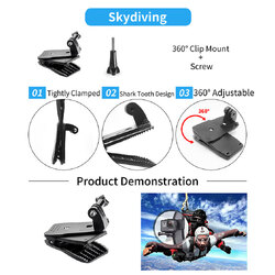 The Camera Accessories Kit is widely used in your life. It helps you take photos and videos more easily while skiing, skating, running, cycling, boating, diving, ice hockey, surfing, etc.