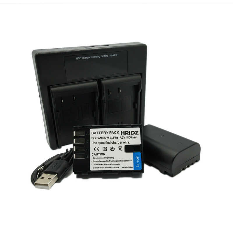 Hridz DMW-BLF19 Battery and Charger Set Replacement for Panasonic DMW-BLF19 Battery, Includes 2-Pack Batteries and Charger for Panasonic GH3 & GH4 cameras (2-Pack 1800mAh Camera Batteries and Micro USB Input Dual Charger, 100% Compatible with Original, Safety Protections)