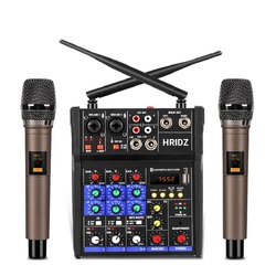 HRIDZ Stereo Audio Mixer Build-in UHF Wireless Mics 4 Channels Mixing Console