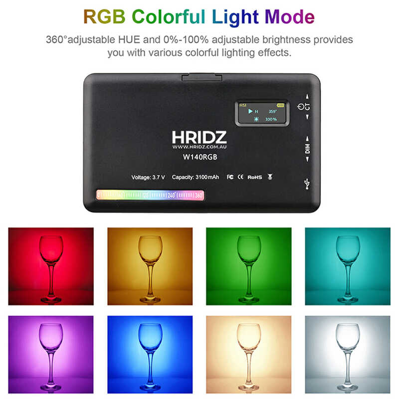 Hridz W140RGB Pocket Video LED Light for DSLR Camera Photography Filmmaking