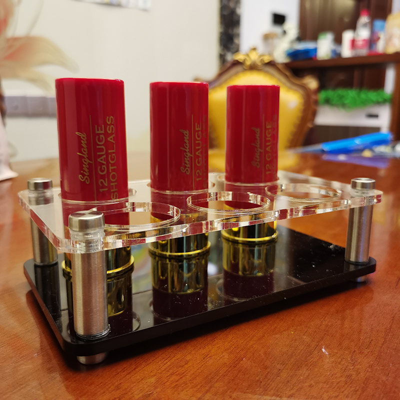 | 12 Gauge Shotgun Shell Shot Glasses Set of 6 with Acrylic Cup Holder Tray for Barware, Kitchen Storage, Shot Glass liquor Tray, Whisky Brandy Vodka Rum and Tequila Shot Set