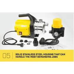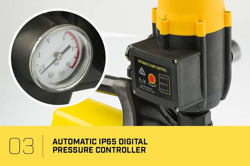 Able to pump 3,700 litres per hour/ 61 litres per minute this pump is designed for pumping clean tank water which is connected to a system where the water flow is controlled with a tap.