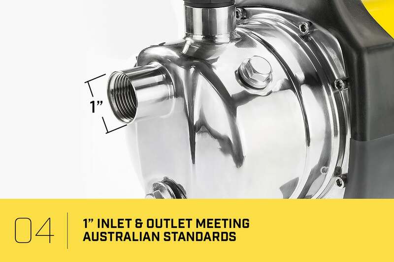 Some 2300 watt power draining monsters not only pump up plenty of water but they also pump up your electricity bill!!!! At 1200 watts this pump is much, much cheaper to run and will still pump plenty of tank water for garden irrigation needs. Plus it won't empty your water tank in no time flat.