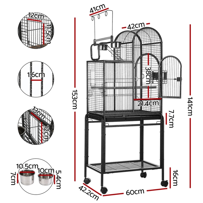 Explore the ultimate habitat for your feathered friends with this dynamic i.Pet bird cage. It seamlessly integrates playful elements like a climbing ladder and a toy hanger with practical features such as wooden perches and feeders. An undershelf provides additional storage space. The design emphasises ease of use, with a slide-out cleaning tray and a removable base for simple maintenance. Multiple doors offer effortless access to the cage, and the inclusion of smooth-rolling castor wheels ensures convenient mobility. Crafted with attention to detail, this cage is a haven of comfort and fun for your birds.
