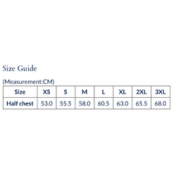 | Half chest | 53.0 | 55.5 | 58.0 | 60.5 | 63.0 | 65.5 | 68.0 |