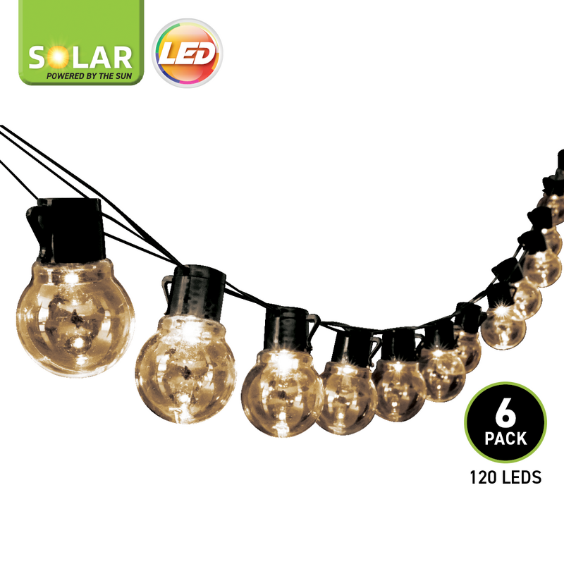 illuminex 6PCE Solar Festoon LED Lights Warm White Weatherprooof 2 Mode 5.7m