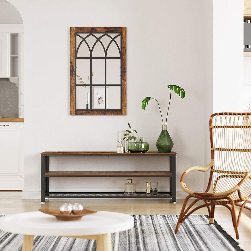 - This two-shelf console is the perfect addition to any living space. Whether you're a binge watcher or a coffee addict, it can be used as a TV table to immerse yourself in your favorite shows, or as a coffee table to enjoy conversations with friends. Enjoy the convenience of having all your entertainment and refreshments in one place.