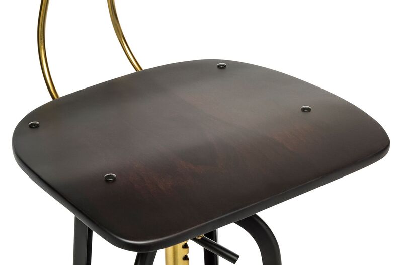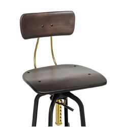 Industrial Wooden Height Adjustable Swivel Bar Stool Chair with Back - Gold Black
