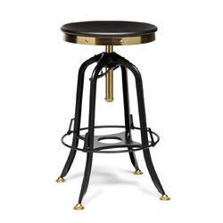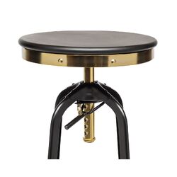 Industrial Wooden Height Adjustable Swivel Bar Stool - Gold Black