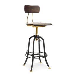 Industrial Wooden Height Adjustable Swivel Bar Stool Chair with Back - Gold Black