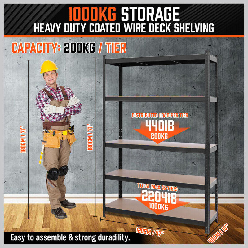 5-Tier Garage Shelving Warehouse Rack 1.8M x 1.2M Racking Storage shelves 1000Kg