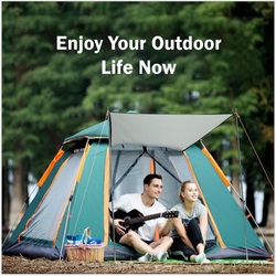 ??etup in 30 Seconds??utomatic pop up tent make you setup with 30 Seconds with 1 person. First Lift top of the tent, and the liquid stand will support the whole camping tent instantly. Just like opening an umbrella. Then lock the buckle of pole joints to ensure the tent always maintains its shape even if it is hit by external forces. Save time and easy operate by beginners.