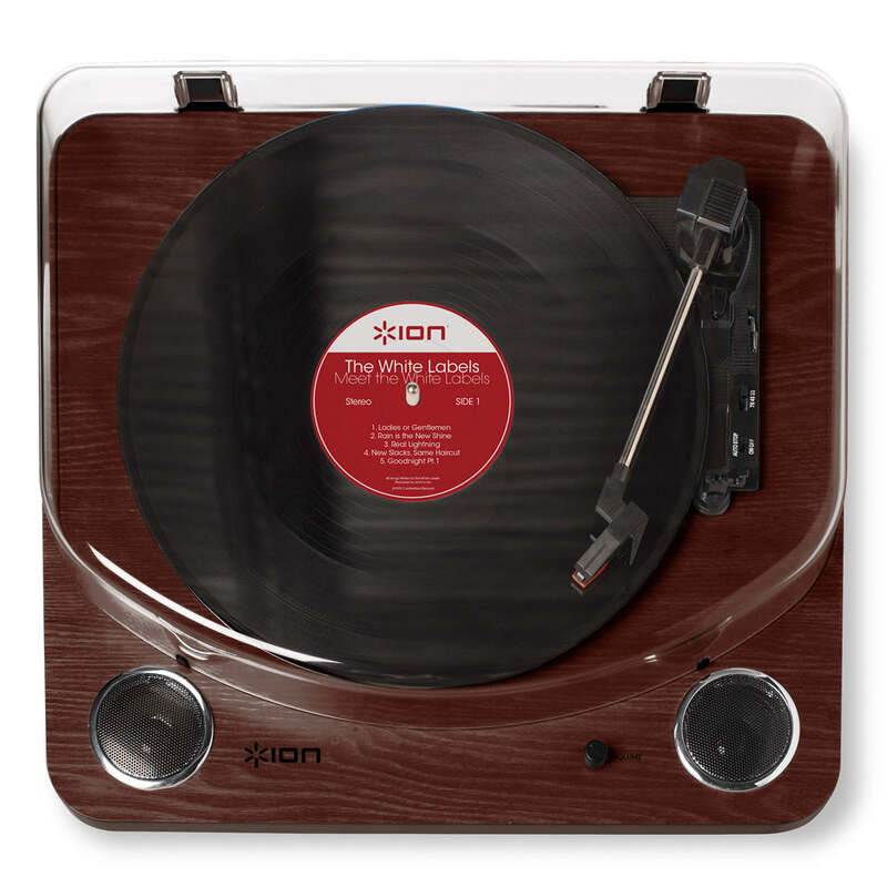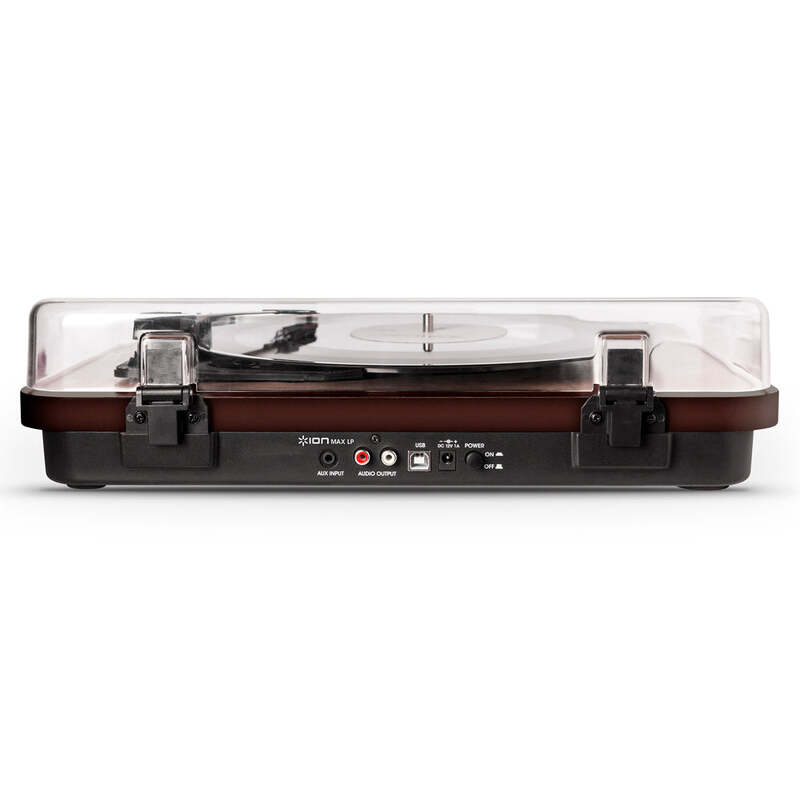 ION Audio Max LP Turntable - Darkwood - Rediscover your Vinyl record collection: Premium 3-speed turntable (33 1/3, 45, and 78 RPM) that plays every LP/record in your collection, completed in a luxurious darkwood finish.The centrepiece of your vinyl listening experience: 1/8 inch aux input to convert or playback from media sources; Standard RCA outputs to connect to external speakers and HIFI separates. Room-filling sound ??Onboard built-in stereo speakers deliver punchy, crystal clear sound; no fuss, simply kick back and listen to your records. Update your library: Convert tracks into digital files via USB onto your PC or Mac with the included ION Audio EZ conversion software. Everything you need: Protective dust cover, 45 adapter, and felt Slipmat included