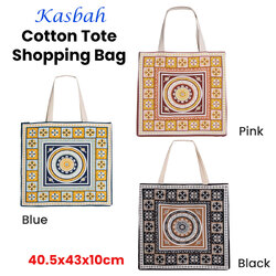 The Kasbah Cotton Tote Shopping Bag 40.5x43x10cm by J Elliot Home is inspired by the streets and colours of Morocco. It is bold, brave and eye-catching in its design. Add a pop of colour to your every day with the cotton statement piece. Take it to the park, the beach, the supermarket or on your everyday errands. Available in a Pink, Black and Blue multi explore the entire Kasbah range! It features traditional Moroccan pattern printed in striking colour tones. It is made from quality Cotton fabric.